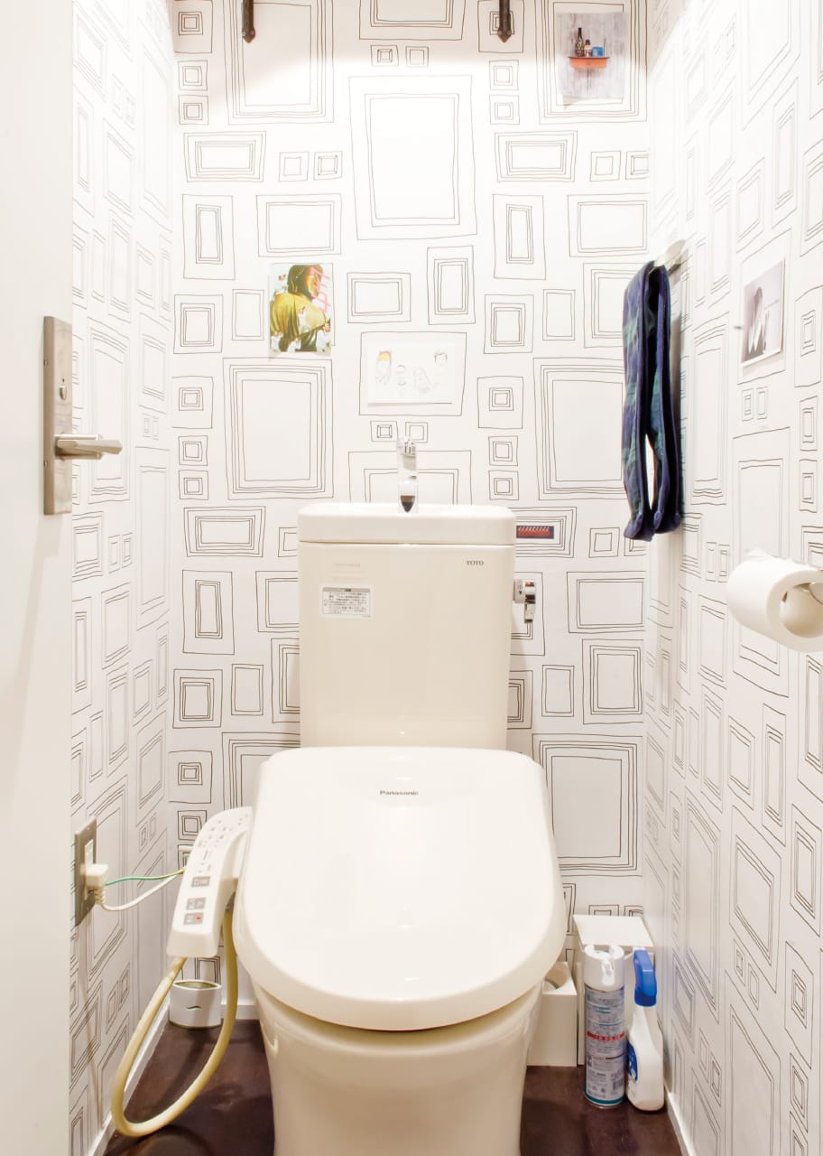 トイレの壁は印象的なクロスを使い独特の世界観を演出。