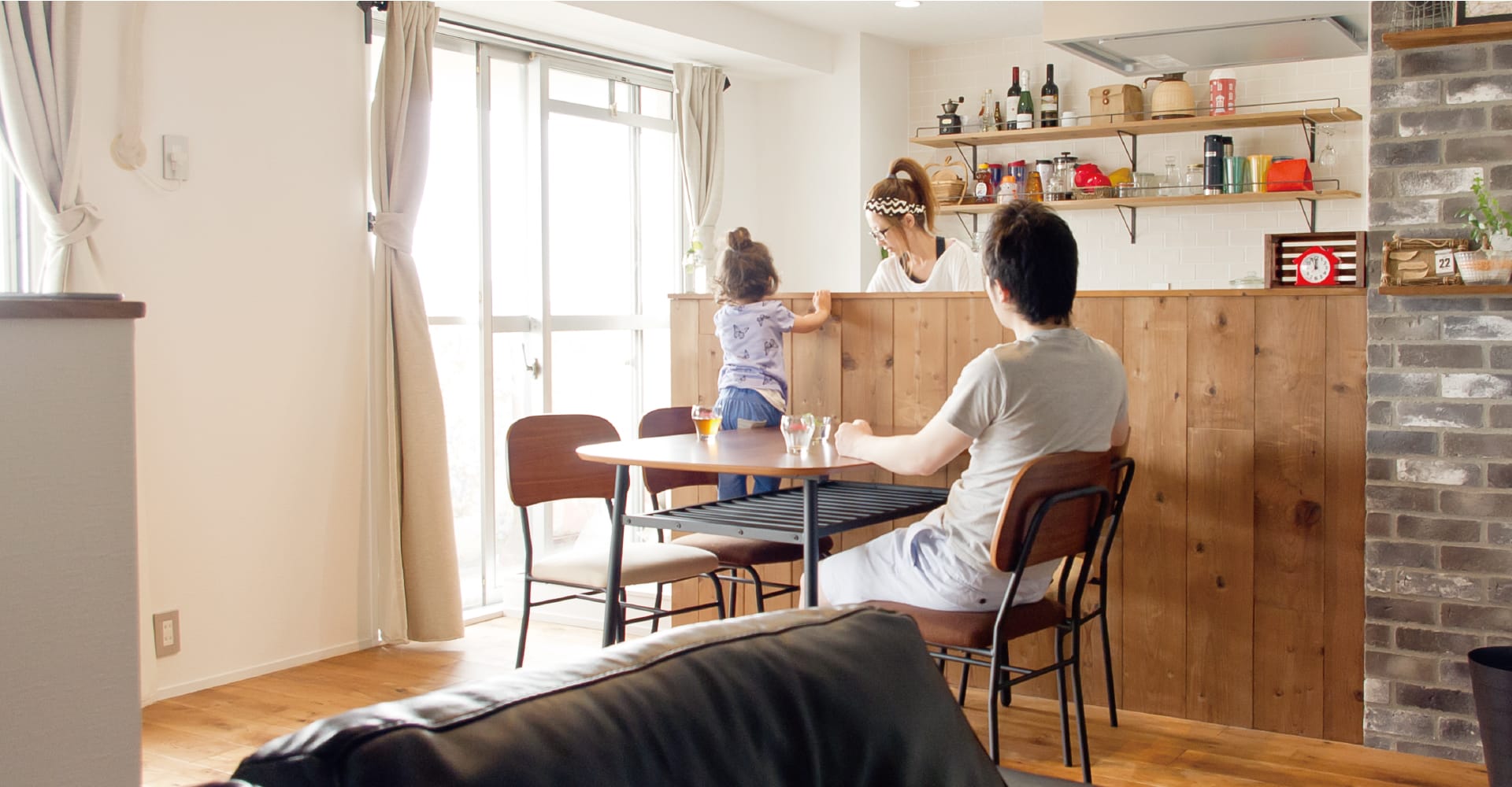 LDKを広々とさせるために、和室を撤去。対面式のキッチンやワークスペースはTさんのお気に入り。