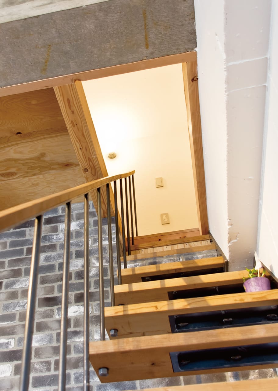 シルエットが美しいアイアンのフレームの階段を上れば、