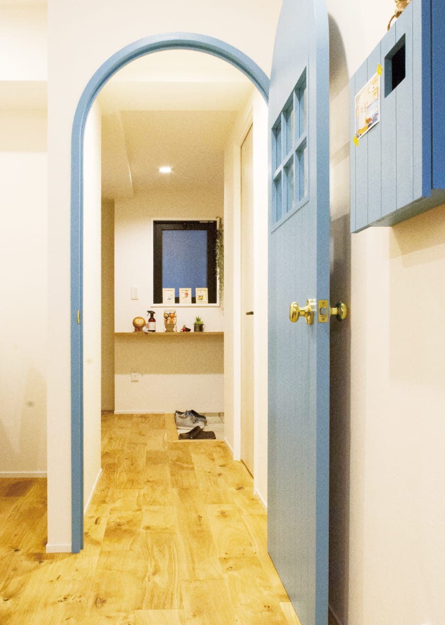 キッチンと同じアイスブルーの塗装で仕上げました。