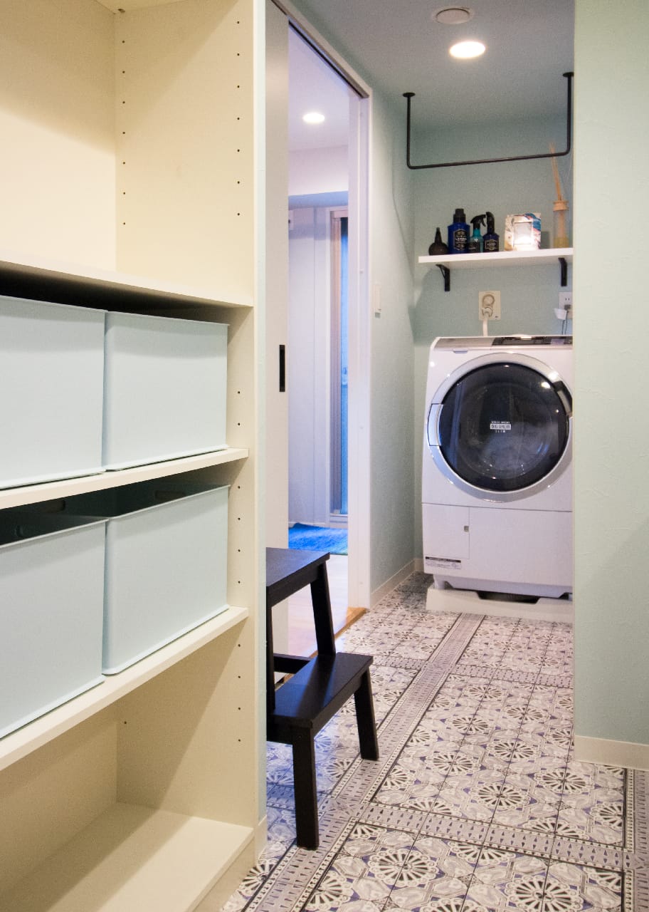 出入りできる2WAYタイプの洗面スペース。