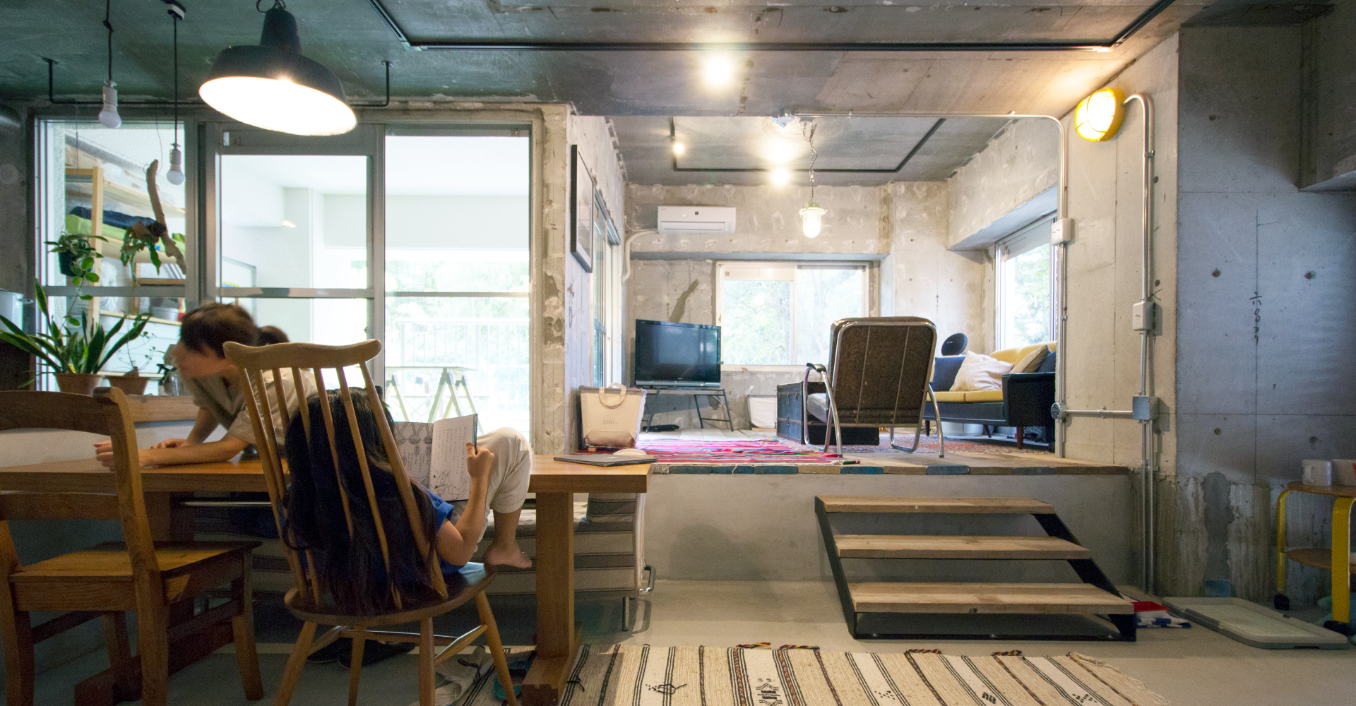 窓からの景色やスキップフロアで繋がる間取りに惹かれて購入した築35年のマンション。