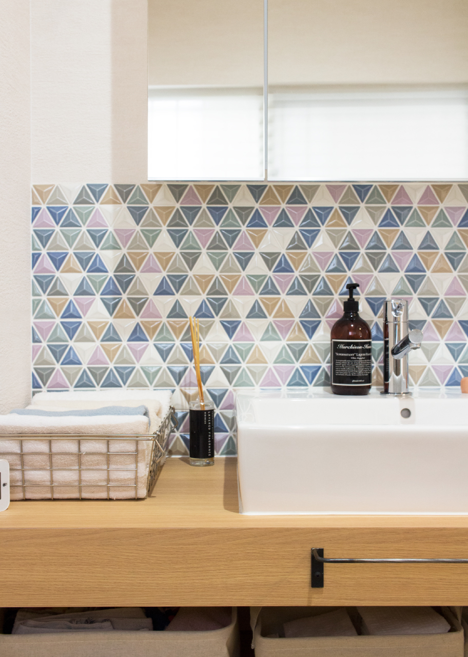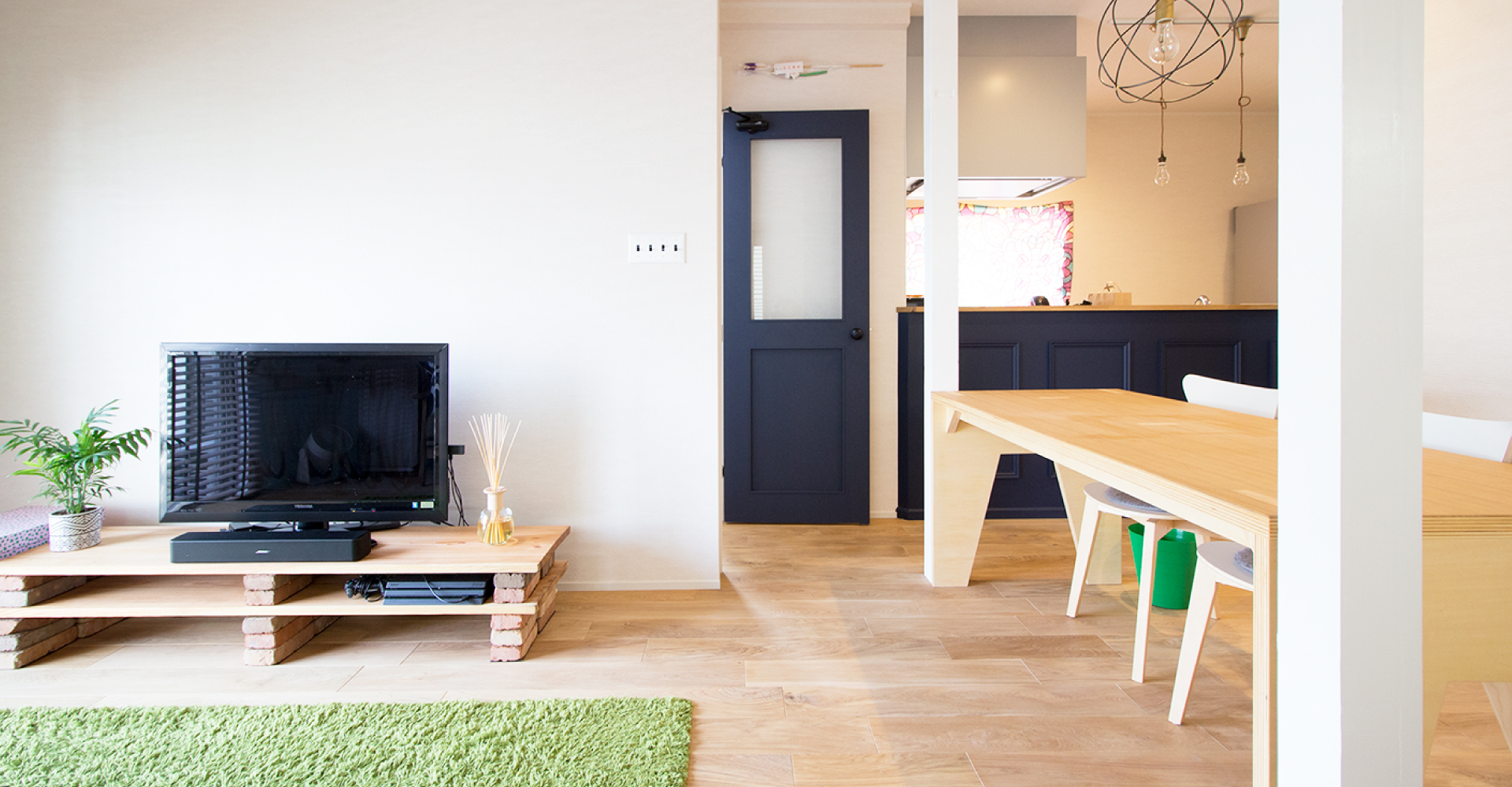 リノベーションのきっかけはWebデザイナーであるご主人の独立。「自宅に加えて事務所を借りるか、家を購入して自宅兼事務所にするか、将来犬を飼いたいという夢もありましたし、後者の方が私たちのライフスタイルに合っていると思ったんです」。そこでピンときたのがスタンダード。「通勤途中にスタンダードさんのオフィスがあって以前からファンだったんです。ブログやSNSなどもチェックしていましたし、まず話を聞きに行こうと」。すぐに意気投合し、物件探しや資金計画から依頼。「最初の相談に行った帰りにはもうスタンダードさんにお願いすると2人で決めていましたね」。購入したのは箕面の高台に建つ築37年の2階建て住宅。玄関の大きな吹き抜けや街の絶景が望めるリビングの掃き出し窓が特徴的で、無垢フローリングの広いLDKに空間全体が見渡せるオープンなキッチン、2階にご主人の仕事部屋がある家がKさんの希望。デザインはテイストを決めず、ご夫婦の好みをバランスよくミックスした。