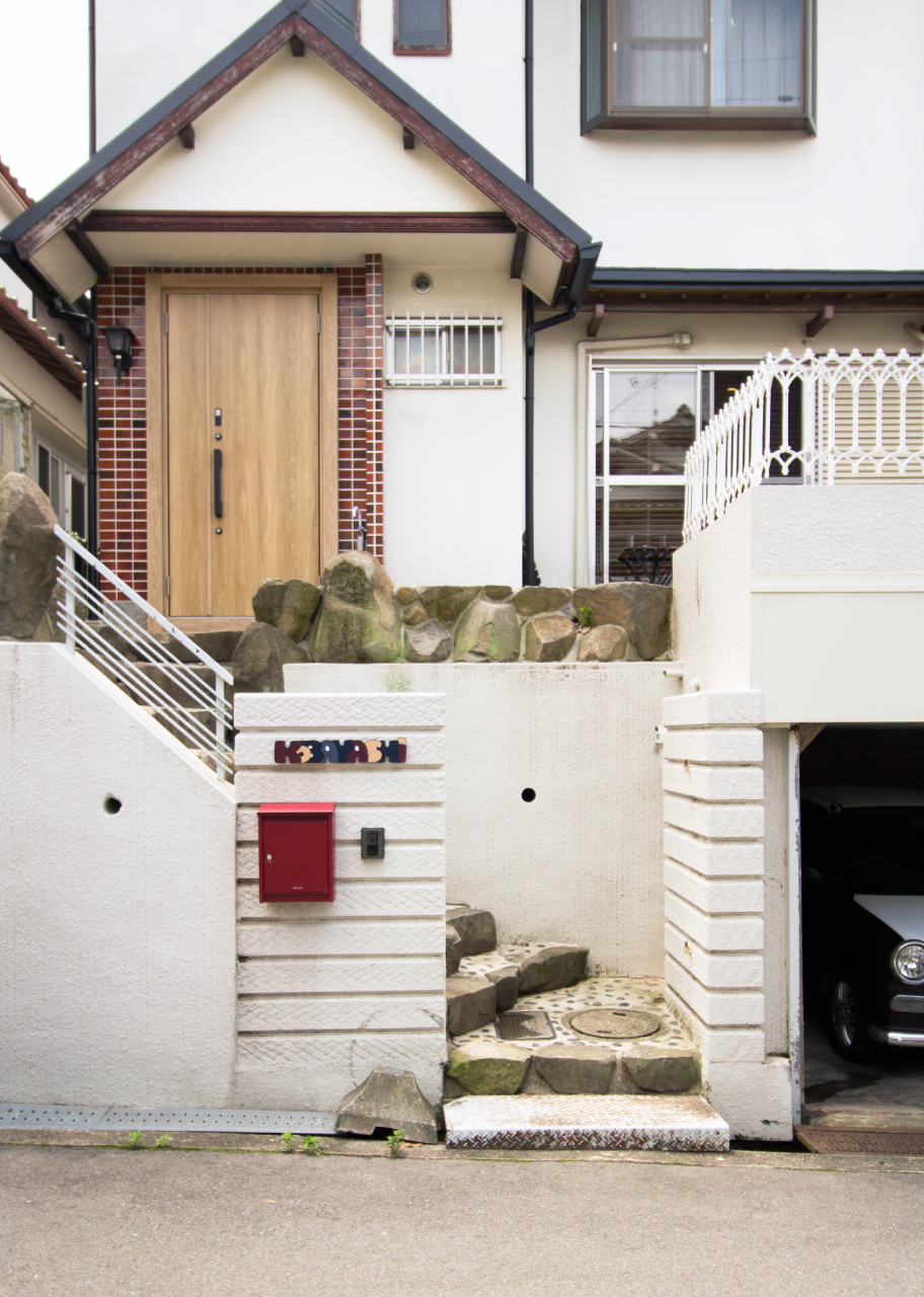 玄関ドアを木製のものに変更し、表札とポストを新設。「外観はこれから時間をかけて改装していこうと思っています」。