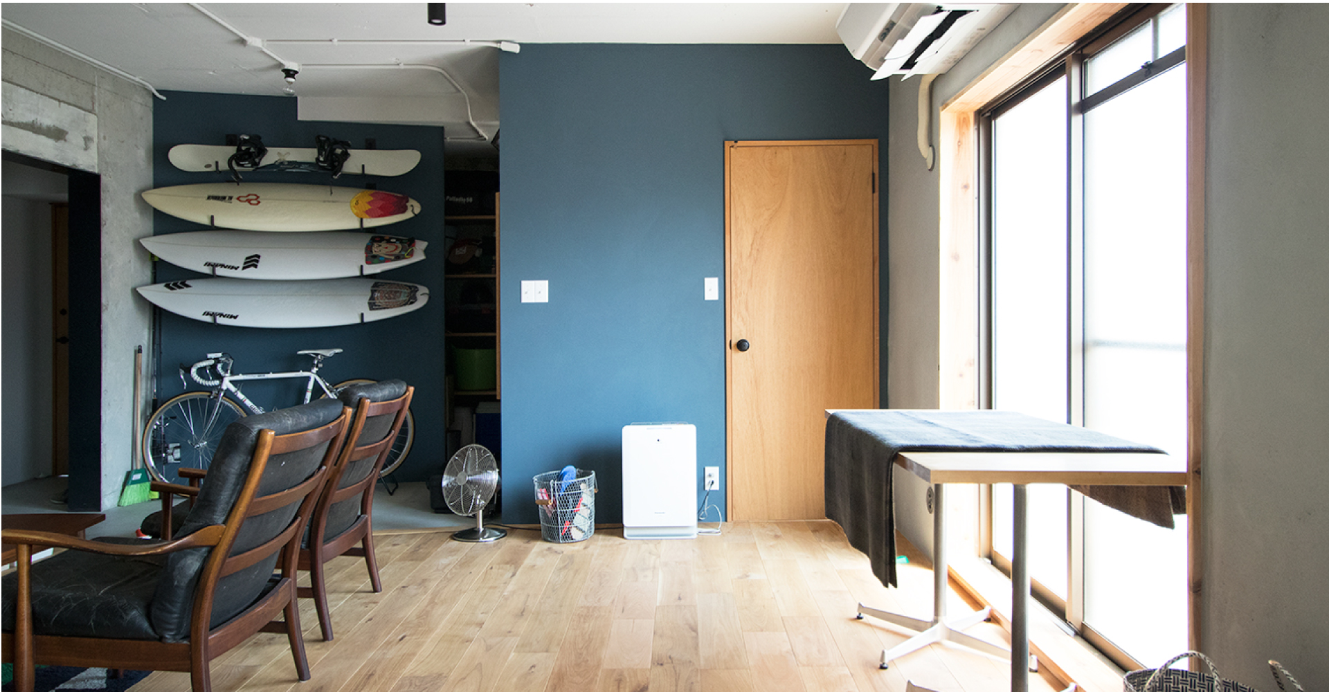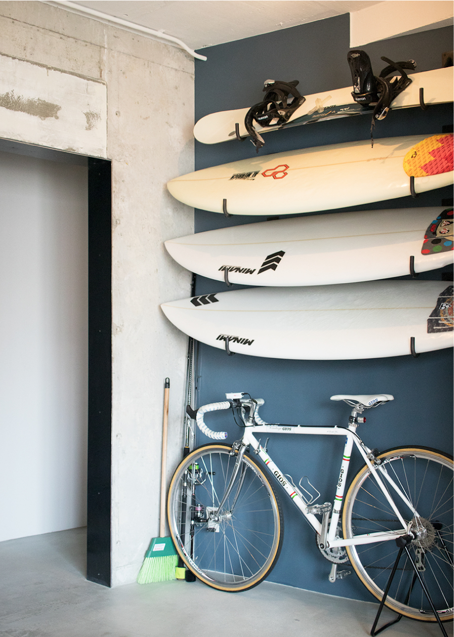 玄関土間は広めにとり、自転車やサーフィン・アウトドア用品などを