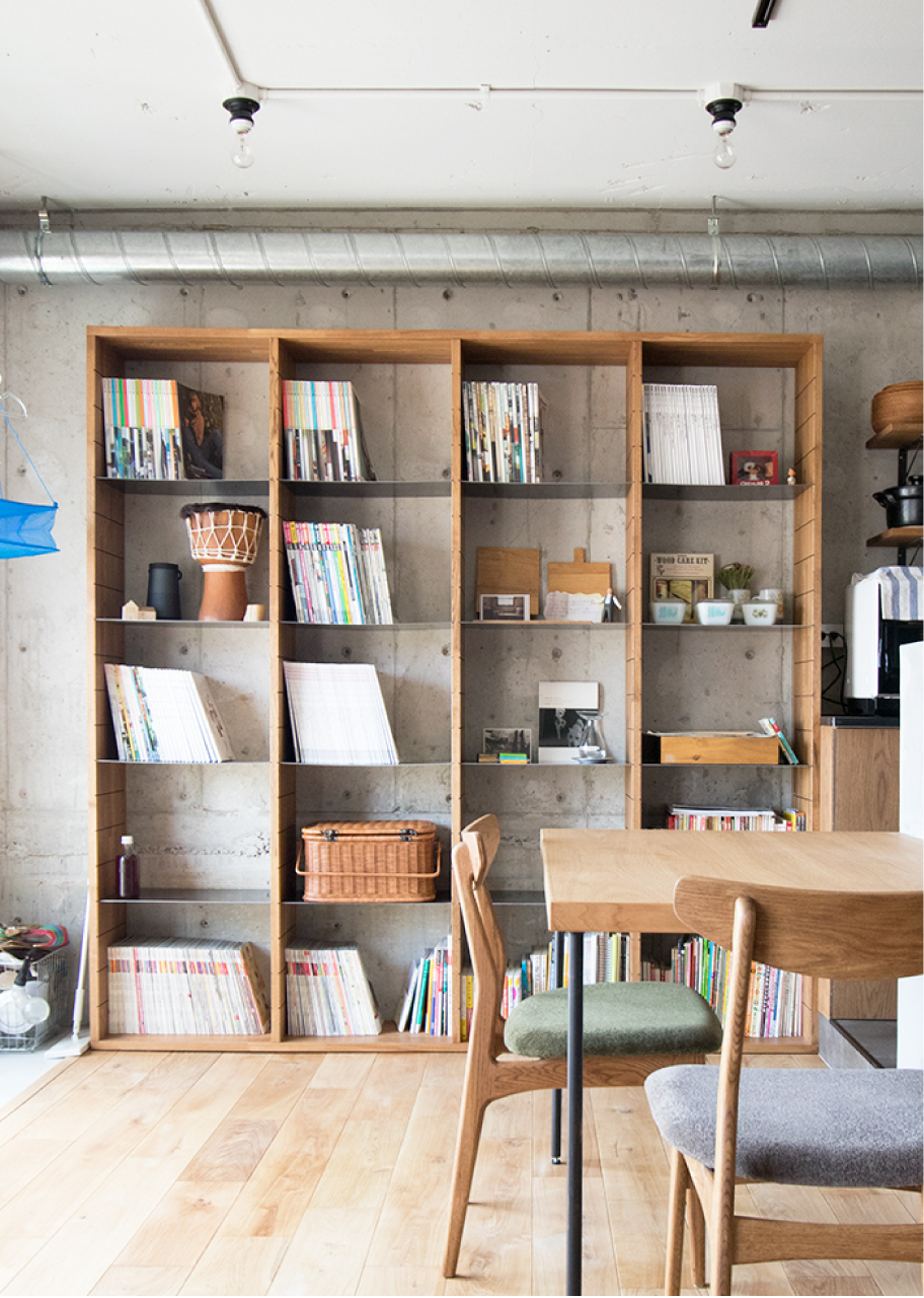 コンクリートの壁が見せ、抜け感を持たせ圧迫感のない仕上がりに。
