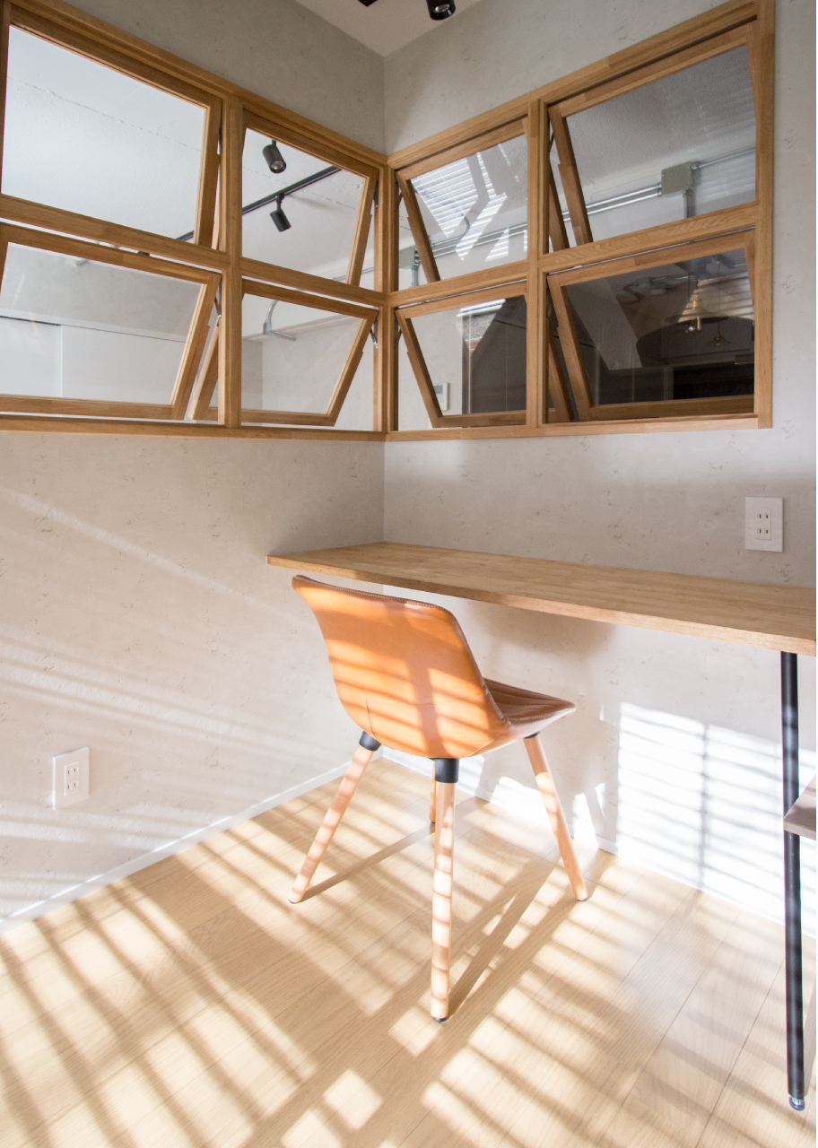 室内窓で仕切られたスペースは子供達の遊び&勉強部屋に。