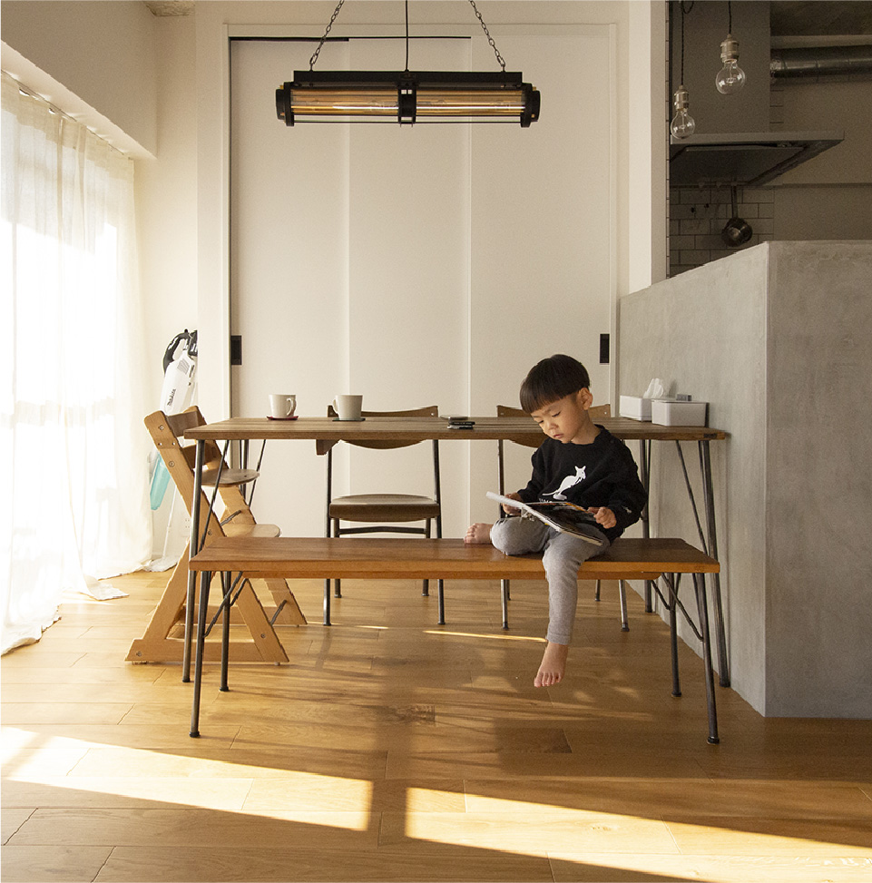物件探しから完成まで、楽しい事や悩んだ事もたくさんありましたが、賃貸のアパートから今のマンションに引っ越してきて、家族全員が笑顔で、楽しい!素敵!と思える家に仕上がりました!リノベーションを選んで本当に良かったです。