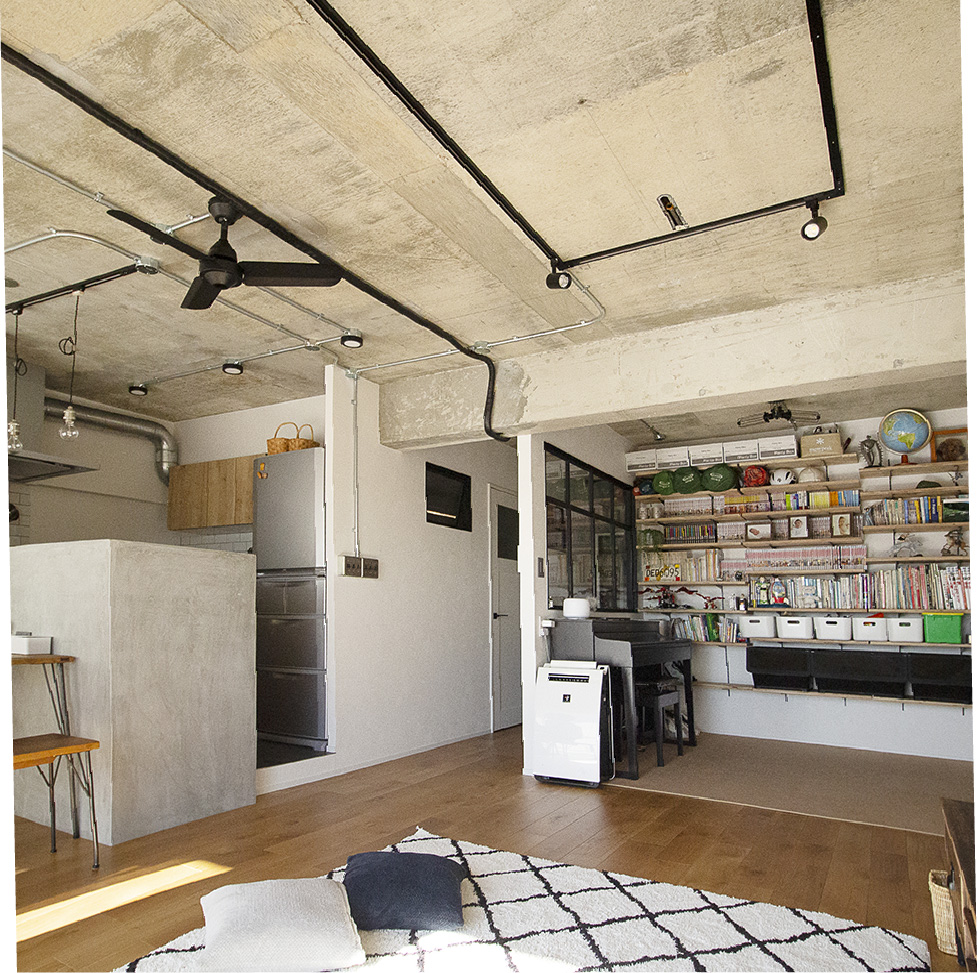 3人の子ども達の音がマンションだと気になるかなと思い、初めは戸建てで探していました。元々住んでいた場所がここの近くで、今の場所から前の住み家が見えるくらい近いんです(笑)。子どもの学区のことを考えたり、やっぱり北摂エリアから離れると少し違うな~という感じもあり、そうすると戸建で予算内だと住みたい家が見つからなかったんですね。新築のマンションの内装も、何だかどれも似たような感じで、間取りも決まっているし、それだったらリノベーションが自分達には1番合っているのかなと考えました。