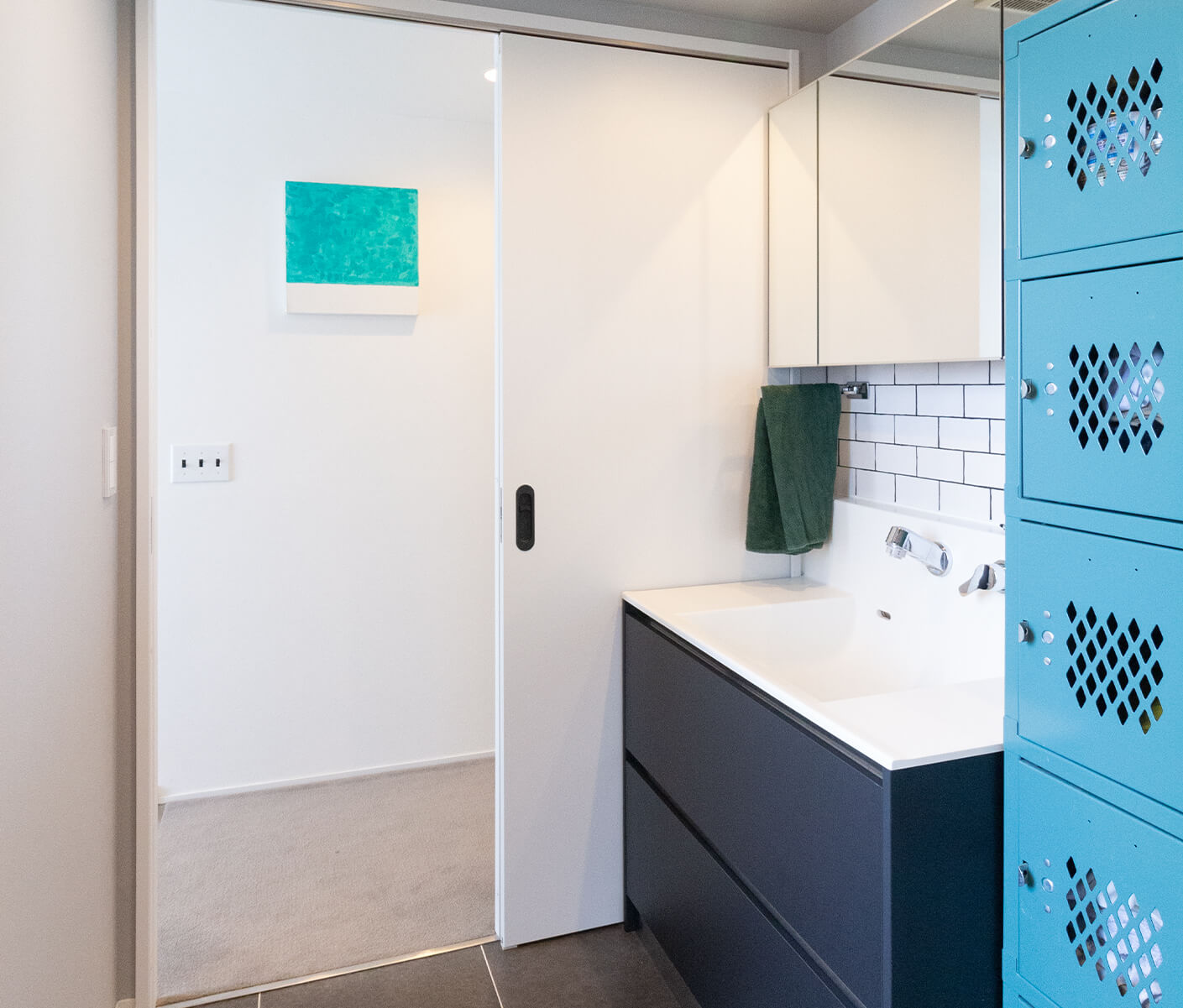 あえて収納をつくり過ぎないようにしたことで、部屋を広く使えてレイアウトの汎用性も高く飽きのこない空間を創ることができました。天井も高く空間にゆとりがあるのもいいですね。エントランスから洗面室、LDKへと回遊性のある間取りで生活動線もよく便利です。