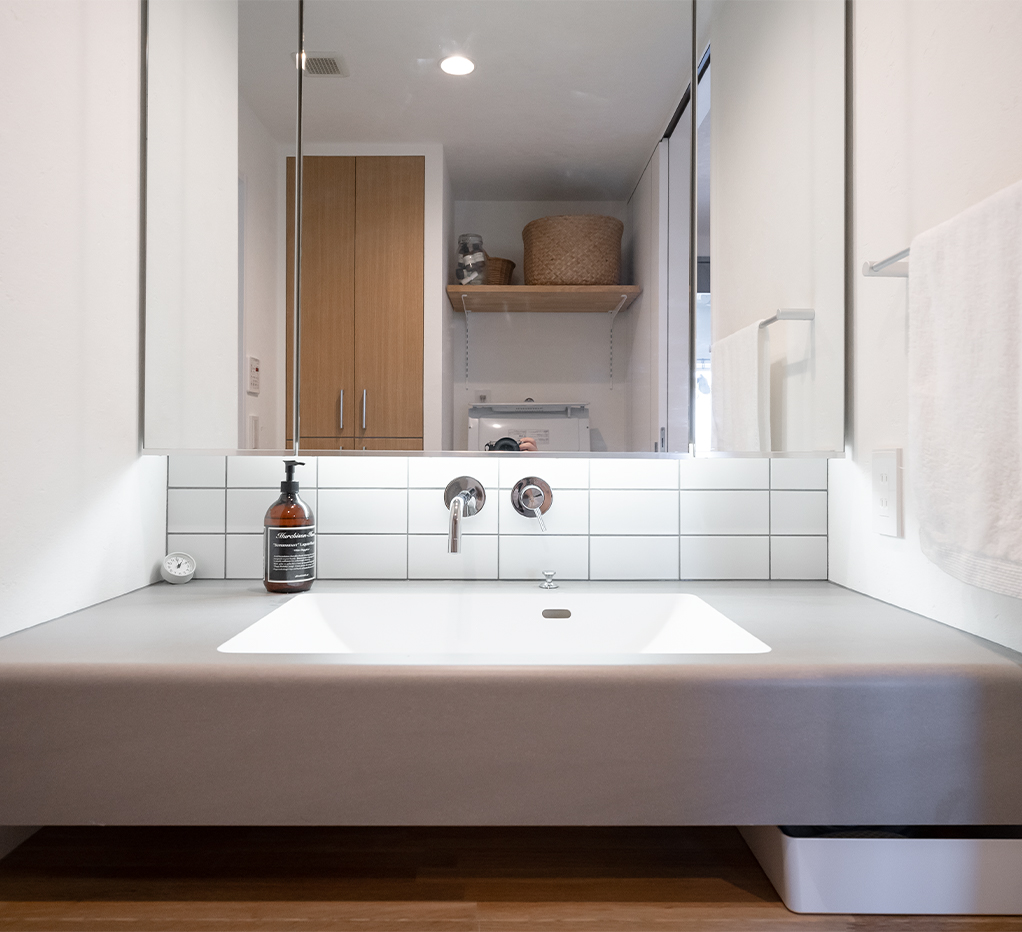 LDKを広く開放的な空間に。キッチンとバスルームはショールームへ何度も足を運び、とことんこだわりました。また長年住んでずっと改善したいと思っていた箇所、例えば洗面台をもう少し高くしたり掃除しやすくしたりなど細かい部分にもこだわりました。