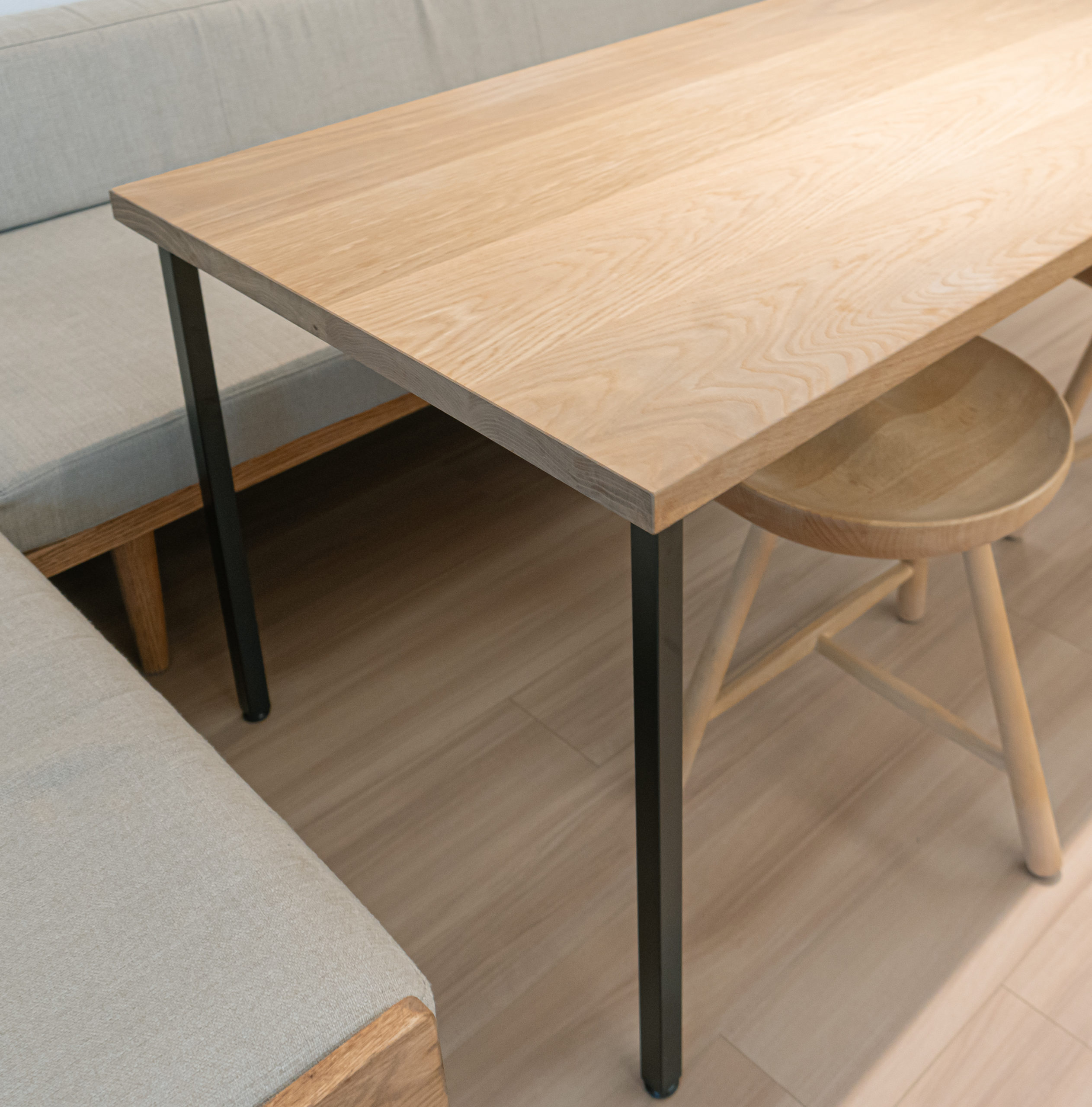 さまざまなアイテムを購入しましたが、大きなもので言うと、低めのソファとStandardさんでお願いしたオーダーのテーブルです。空間を広く見せるために、背もたれが低いソファを購入しました。そのソファに合うテーブルが欲しくて、Standardさんにご依頼をしました。リノベ空間と家具に合わせて制作をお願いしたので、理想のリビングになりました。
