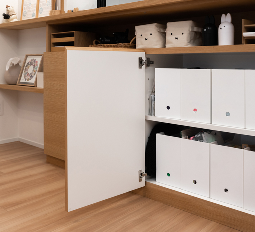 やはり、ファミリークローゼットはみんなから羨ましがられます。ほかにも、手持ちのケースや収納用品に合わせて制作していただいた収納棚などに、生活感のあるものを隠すことができた結果、一言目に「広いね」や「ものがないね!」など言ってもらえることが多いです!