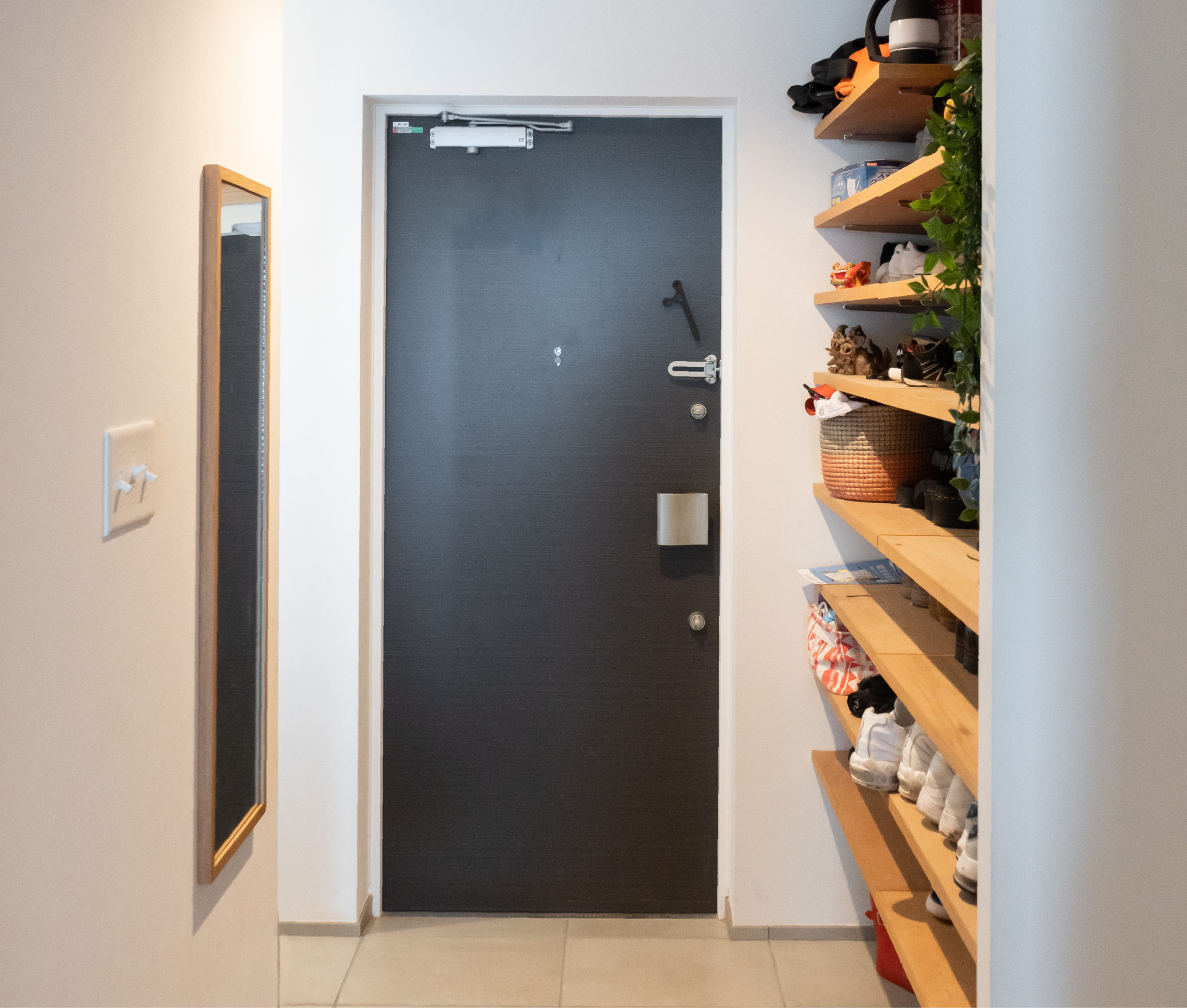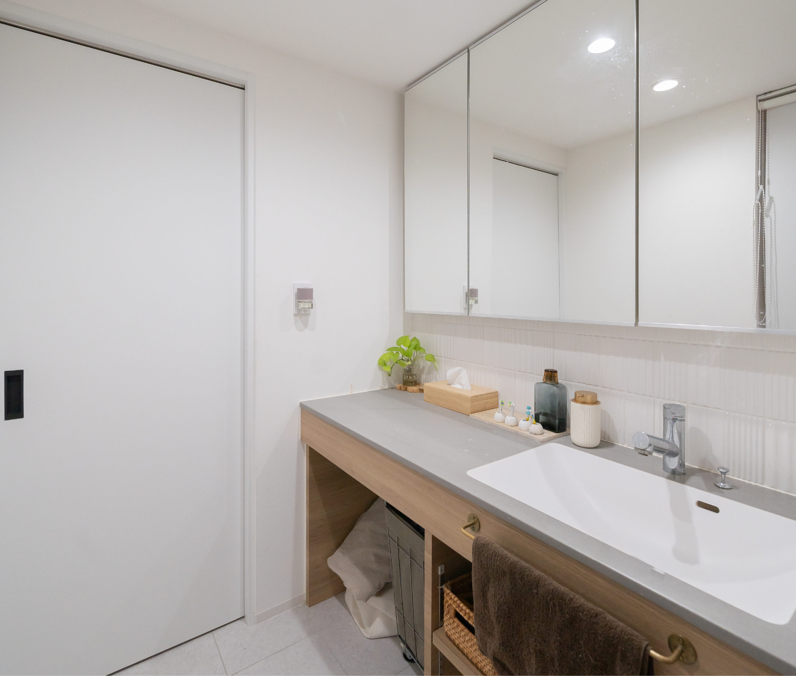 玄関を広めにしたのですが、暮らしてみると使いやすく、収納も設けてよかったです。また、Standardさんの提案で脱衣所と洗面所の間に引き戸をつけていただいたので、子供たちが年頃になったら引き戸をつけてよかったなと実感すると思います。
