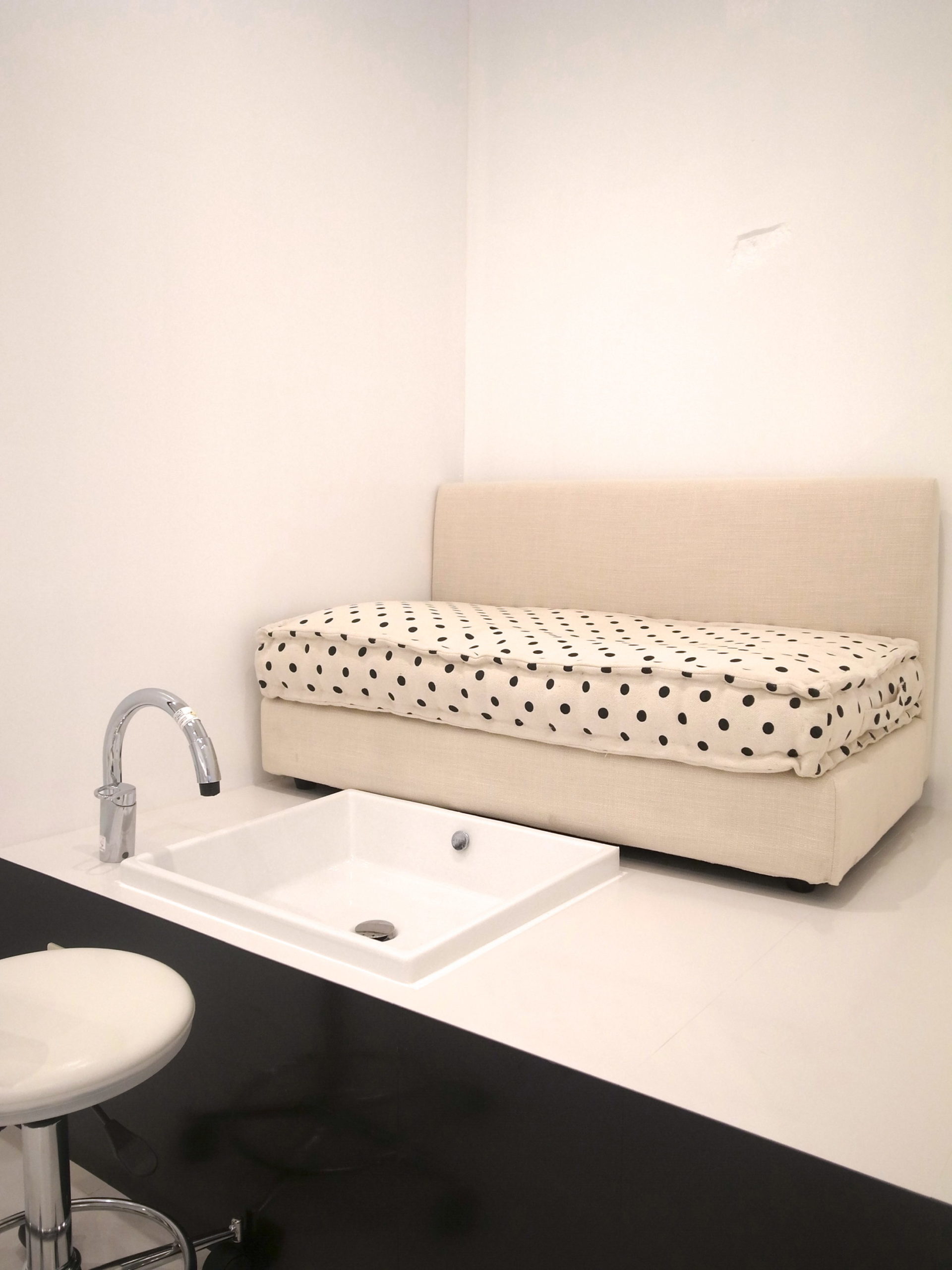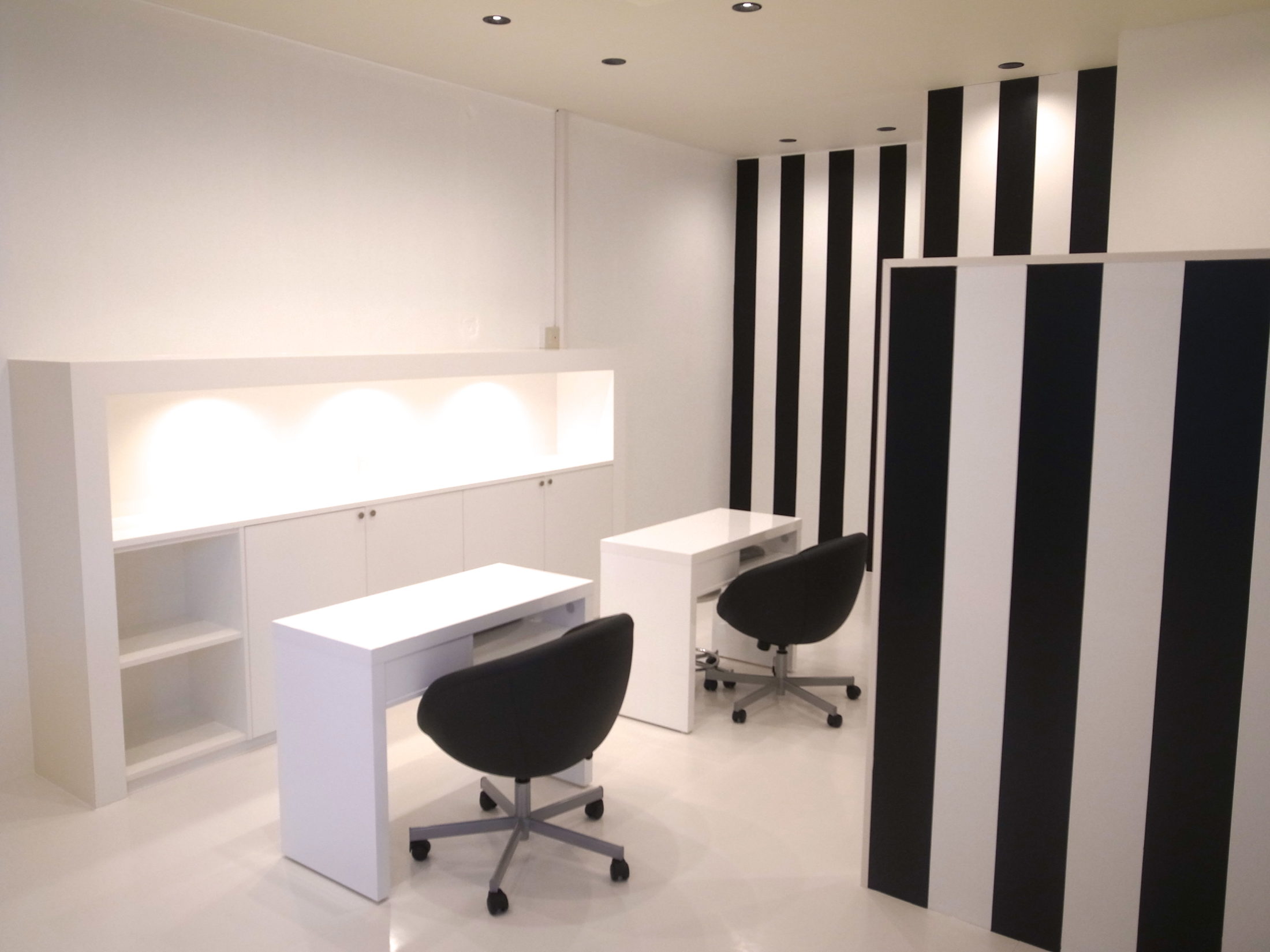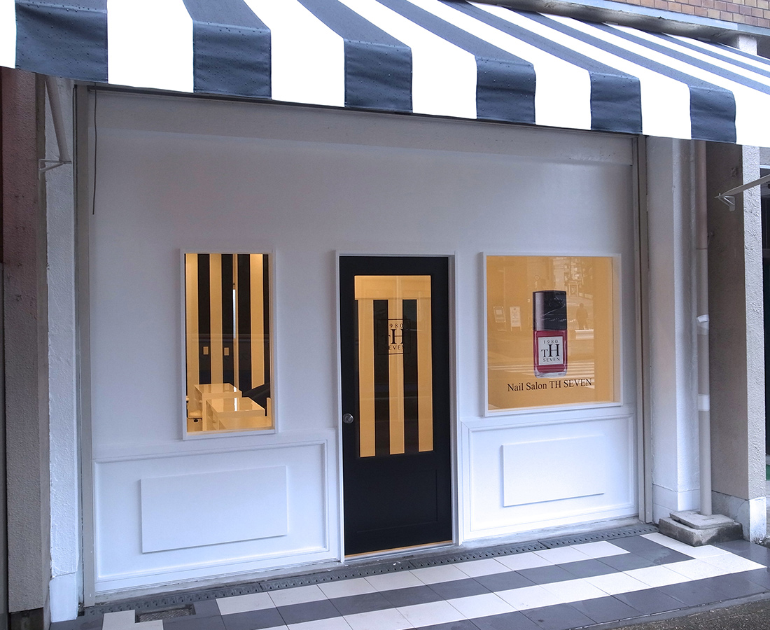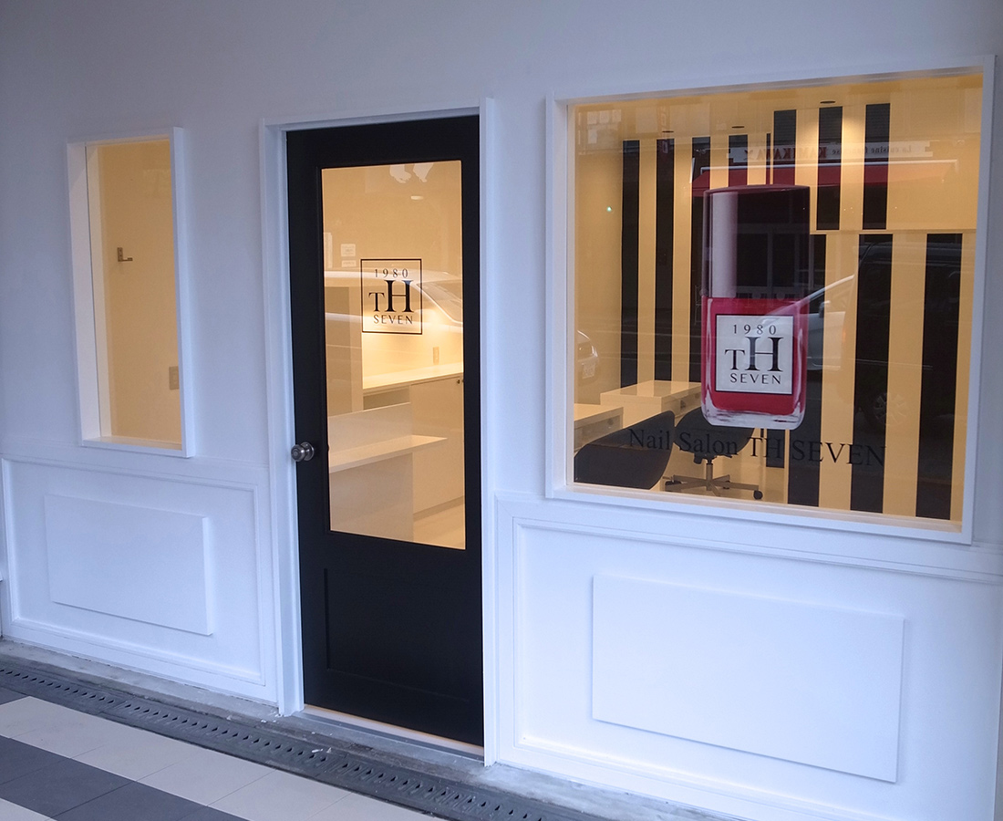 大阪府豊中市のネイルサロン『TH SEVEN』 白と黒を基調とした内装空間デザイン、 フットブースは居心地よい空間に。