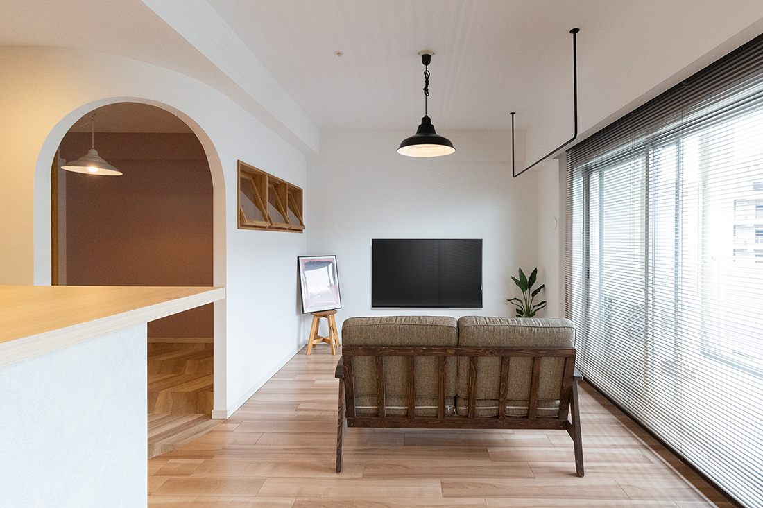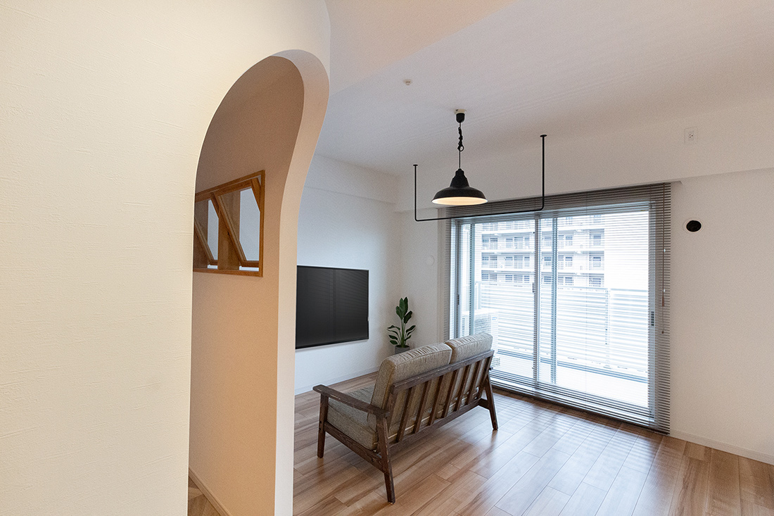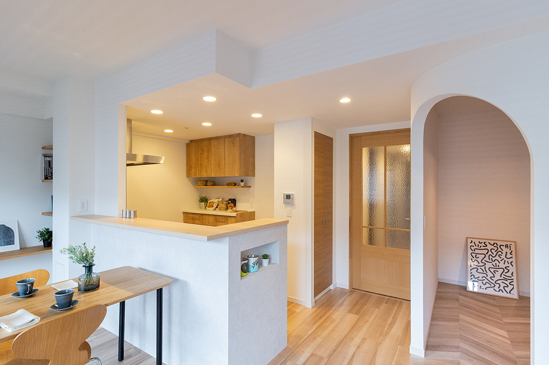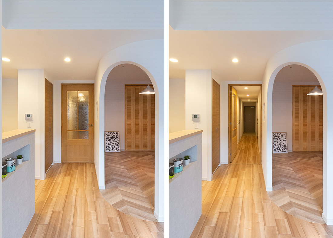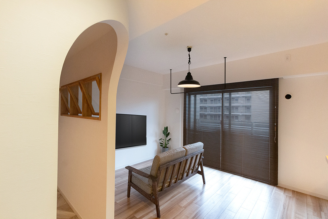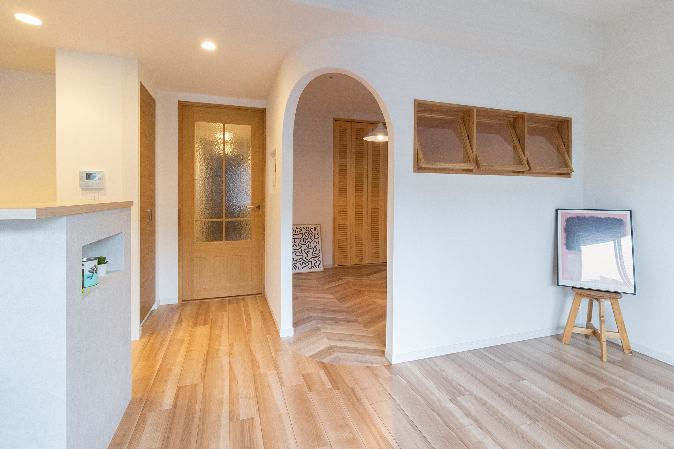 TOP > リノベーション事例集 > 曲線壁にアーチ開口の個性的デザイン