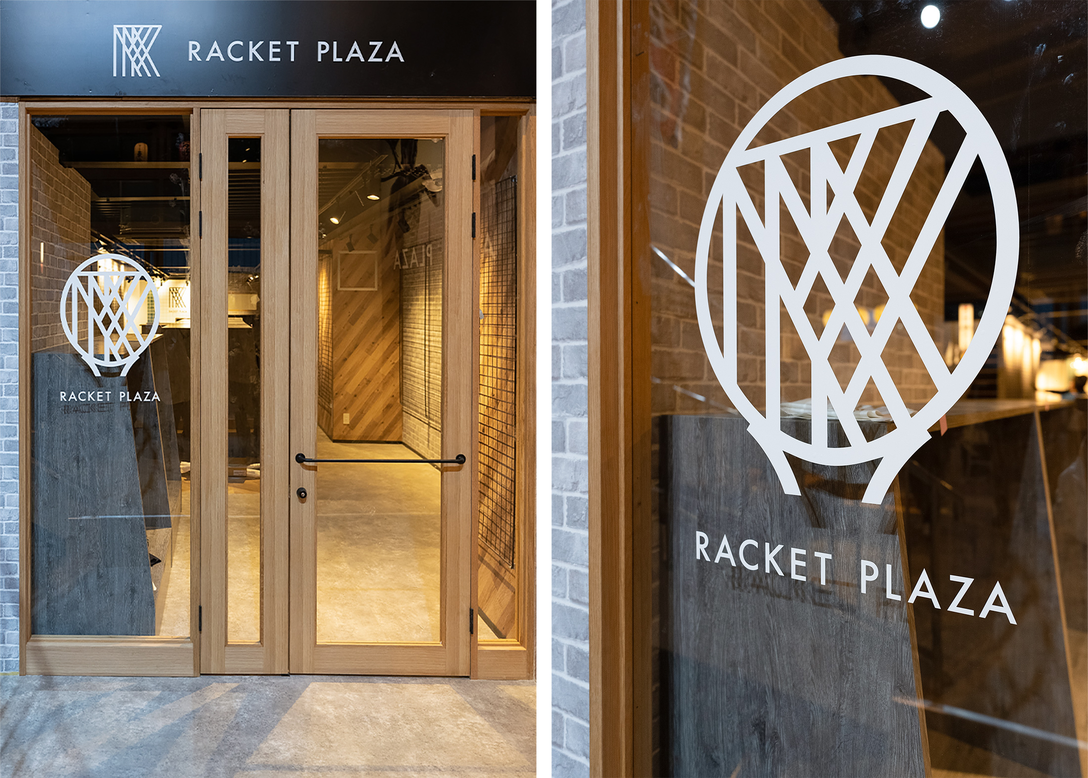 アイアンと木材の階段を上がった2Fにはテニスとバドミントンの2つの試打スペースを用意。落ち着いたカラーの1Fと照明を変え、明るく活発な印象にしました。高架下の特徴的な梁の形を活かしたシンプルながらも個性とインパクトある空間に。1Fと2Fで違った雰囲気を楽しんでいただけるSHOPリノベーションとなりました。こちらは店舗デザイン・設計施工から看板、ロゴデザイン・ドアサインなどトータルでお手伝いさせていただきました。