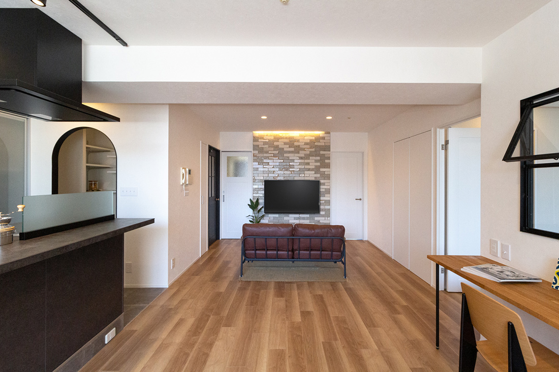 TOP > リノベーション事例集 > タイルと照明で高級感あるLDK