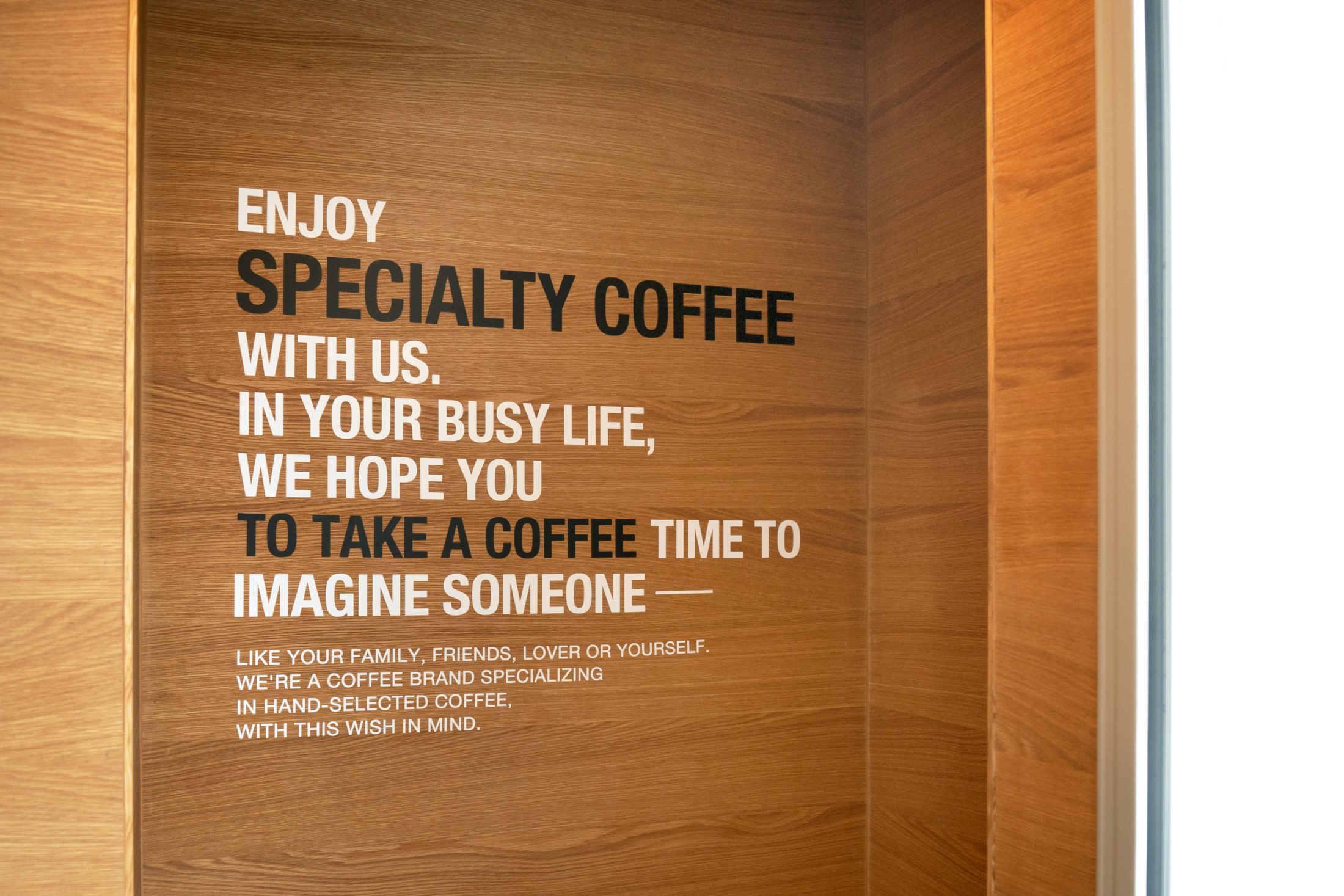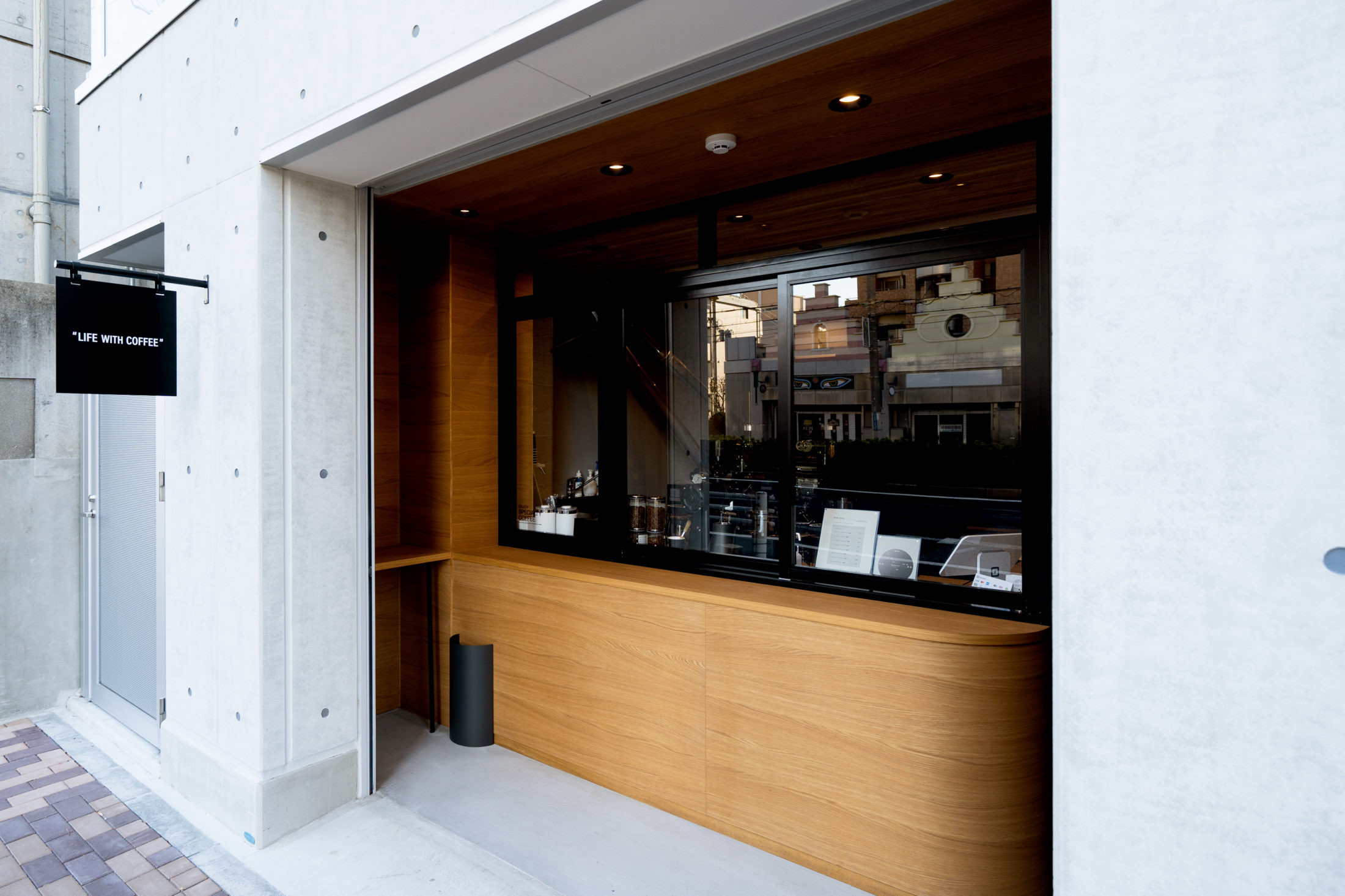 店内は、奥まで続くカウンターとラックが抜け感を与え、通路の天井は躯体現しにすることで、広々とした印象を与えます。 キッチンは焙煎機が置けるように、広めにスペースを確保。また、ショップスタッフの方が作業しやすいよう、ゆとりのあるキッチンに仕上げました。キッチンの脇には、カップなどが保管できるような棚を作成。また、店内とキッチンの出入り口にはコンパクトな手洗い場を設置するなど、おしゃれさを維持しつつ機能面もしっかり充実させました。 色味のトーンや素材の表情を合わせることで、壁、天井、床など全てがうまくブレンドしたスペシャリティなコーヒースタンドが誕生しました。 こちらは店舗デザイン・設計施工からサインデザインなどトータルでお手伝いさせていただきました。