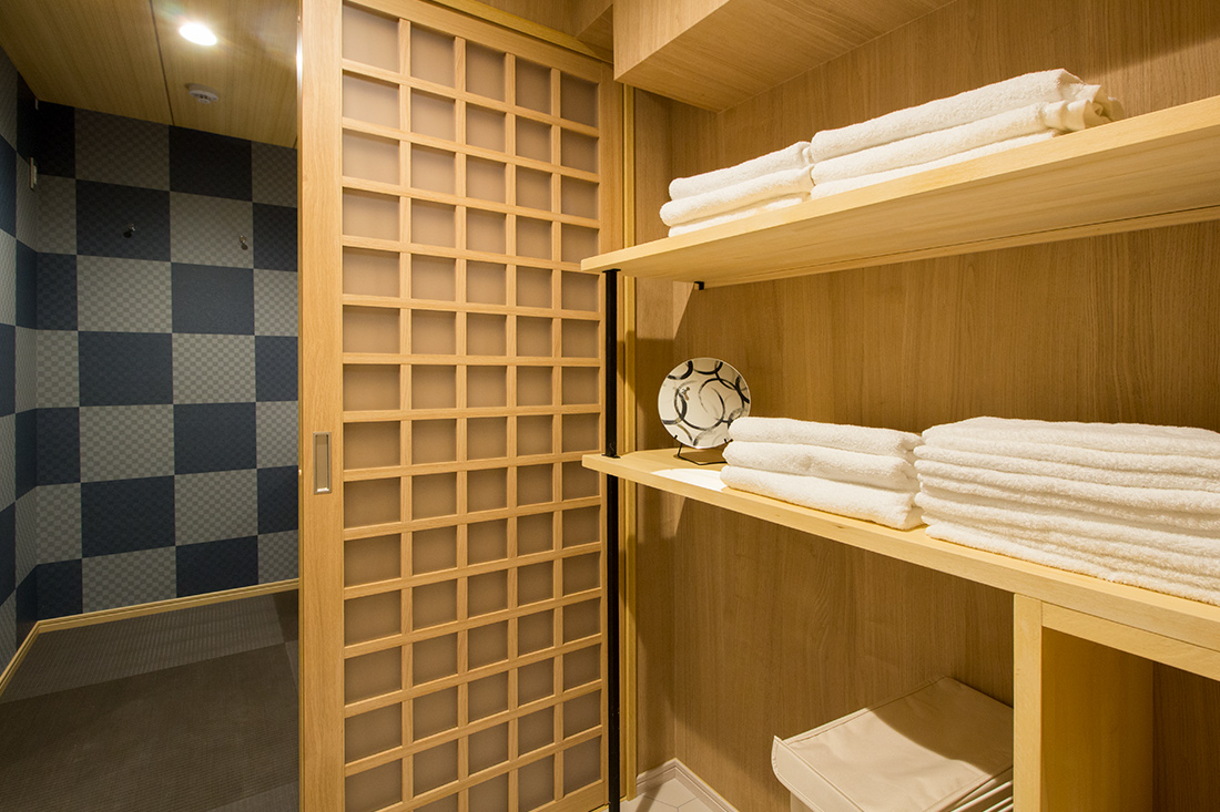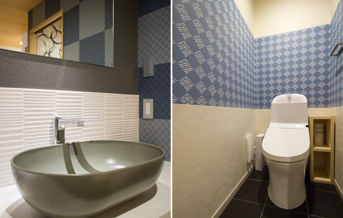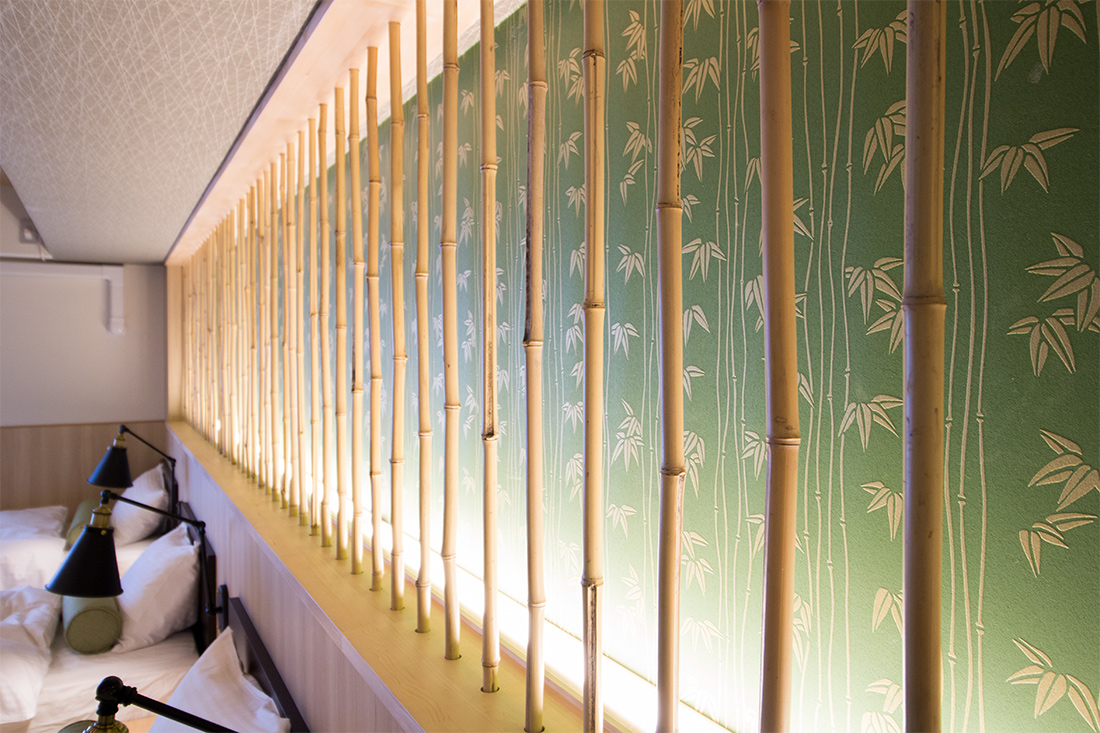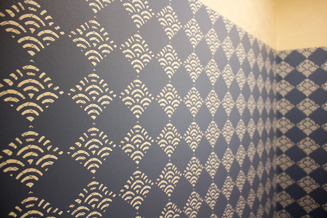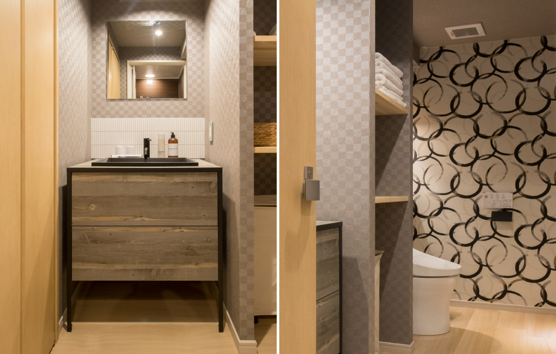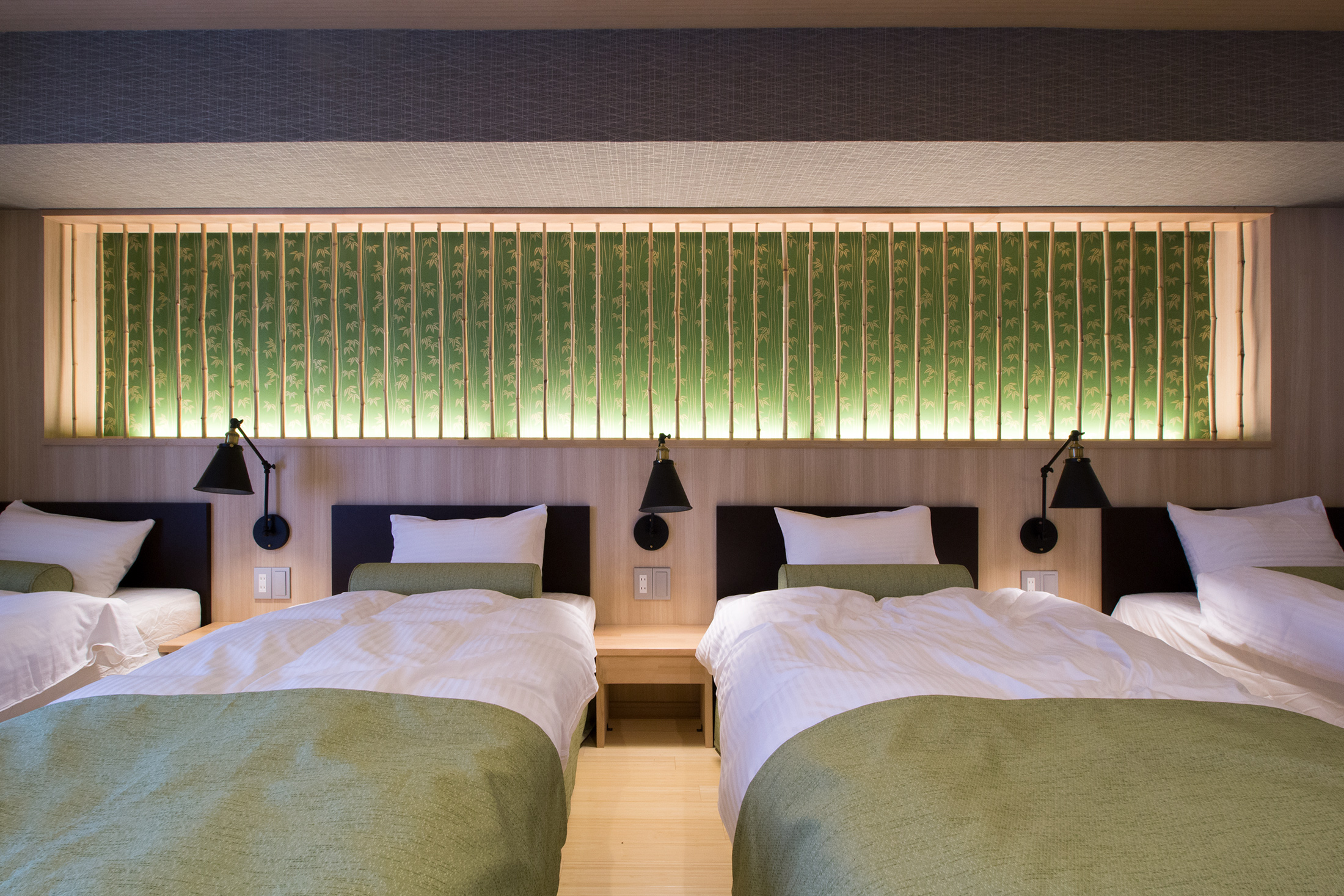 心斎橋のホテルのリノベーション。和モダンの素晴らしさを感じさせる空間に生まれ変わりました。一つ目の部屋では、竹とグリーンの壁紙が見事に組み合わさり、まるで竹林に囲まれているような落ち着きと自然の美しさを楽しめます。旅の疲れを癒やす、リラックスできる空間で都会の喧騒を忘れさせてくれます。一方、もう一つの部屋では、黒の模様の壁紙やカーペットがシックで洗練された印象に。日本画のデザインウォールがモダンな雰囲気を引き立てます。この空間は、スタイリッシュでありながらも温かみのある美しさを感じさせます。どちらの部屋も異なるコンセプトがあり、壁ごとに異なる和風の柄により細部にわたる工夫が光ります。インバウンド需要にも応えるように設計で、外国からのお客様にも日本の伝統と現代性を感じてもらえるようなデザインに。心斎橋のこのホテルでの滞在は、訪れるすべての方に特別な体験を提供する素敵な空間です。