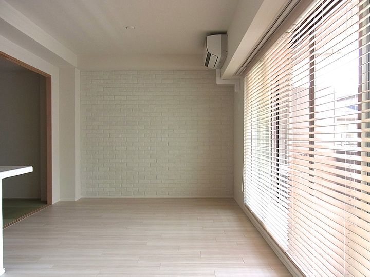 新築分譲マンションをリノベーションしました。 全体的に白を基調にしているので、ゾーンごとに違うタイルや素材を使用しても、まとまりある空間になりました。 リビングは1面だけ貼られた白いレンガがポイント。 玄関にはフットライトを設置して、足元から明るい空間に。 さらに、住む人が使いやすい収納棚と対面にフックも設置しました。 少人数世帯から、家族で住むにもピッタリな居心地いい空間へと生まれ変わりました。